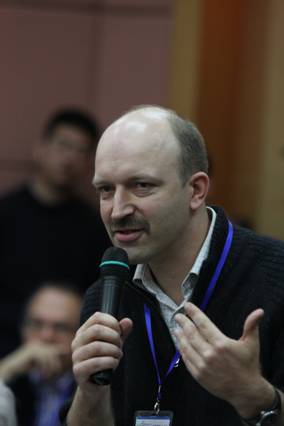 赖志金(莱比锡孔子学院):我是人民大学外国语学院德语系的赖志金,现在担任德国莱比锡孔子学院中方院长。我20年以前在波恩大学做访问学者,跟汉学系有很密切的关系。我对德国当然是有一种友好情结,我愿意说德国的好话。但是从这些年来看,改革开放以来,我觉得从德国的媒体基本上都是一面倒否定中国,不顾事实,我希望我们的中国文学在全世界也应该有越来越好的声誉。我最近刚刚参加法兰克福书展,我看到德国的文学作品翻译成中文的有一大屋子,而中国的文学作品翻译成德语的是个三平方米的小屋子,可以说是一大半对一小半。我们现在学德语的人越来越多,我们在高校里已经有12家有德语专业了。中国人民大学哲学系的李秋零教授正在翻《康德全集》。我们现在有越来越多的研究德国文学的人。我们中国研究世界文学的要远远超出世界上研究中国文学的,希望更多的汉学家以及他的弟子们来好好地研究中国的文学,这才是正道,因为西方人有好多人不愿意学中文。我在拼命地宣传我们的汉语和文化,尽管阻力重重。