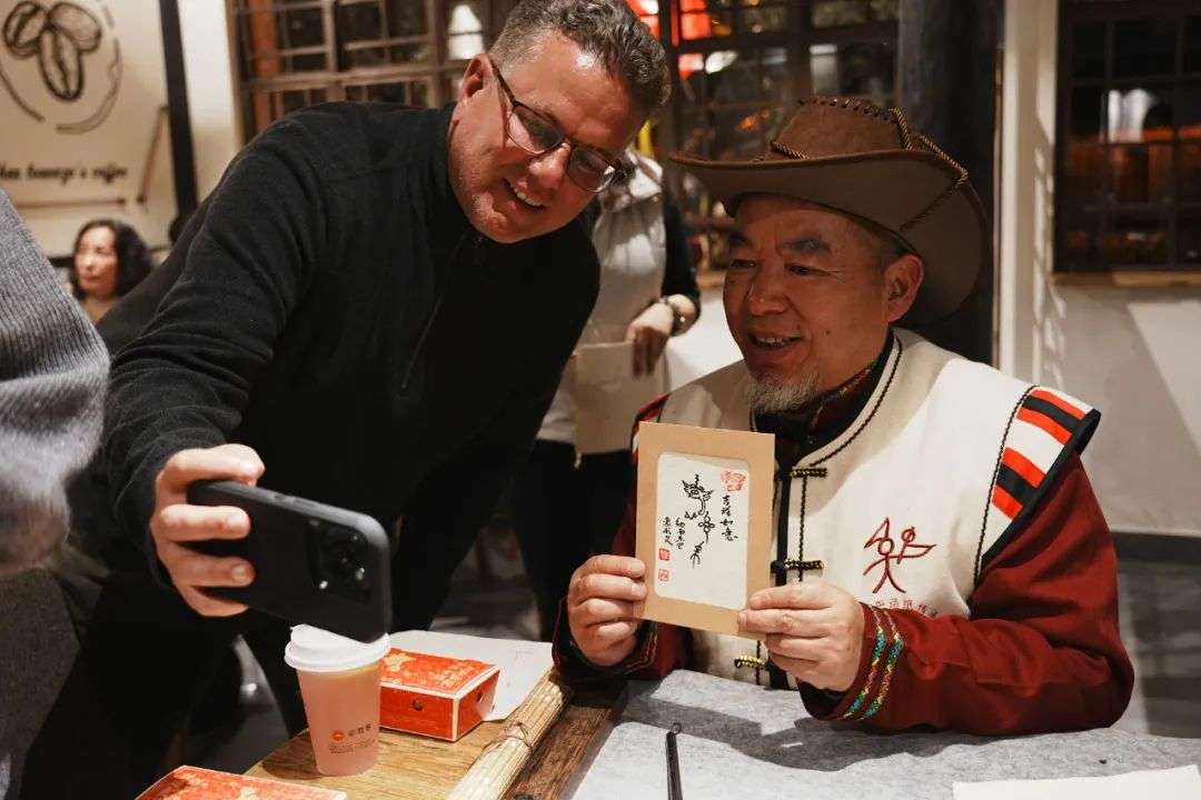 ▲2025年3月9日,云南丽江正值纳西族传统节日三多节,非遗传承人和钧与旅居丽江的民众开展东巴文化交流活动。中新社发顾一航 摄