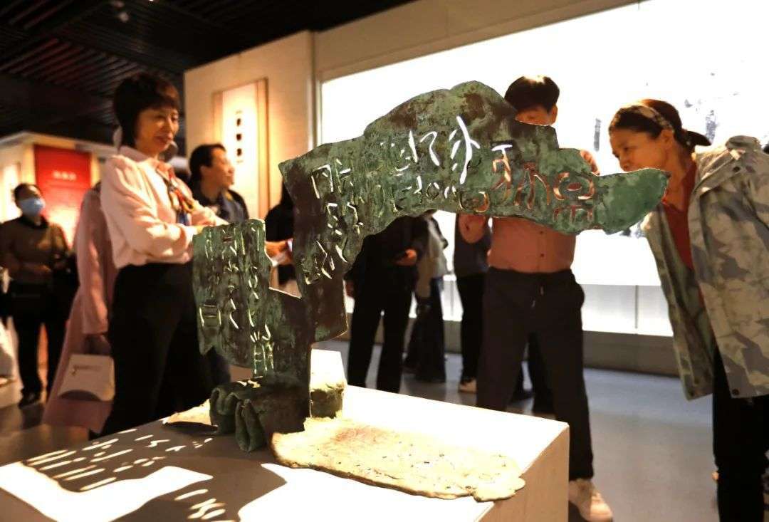 ▲2025年4月21日,“甲骨溯源·国风雅韵”专题展在河南安阳中国文字博物馆开幕。图为甲骨文青铜组雕展品。中新社记者阚力 摄