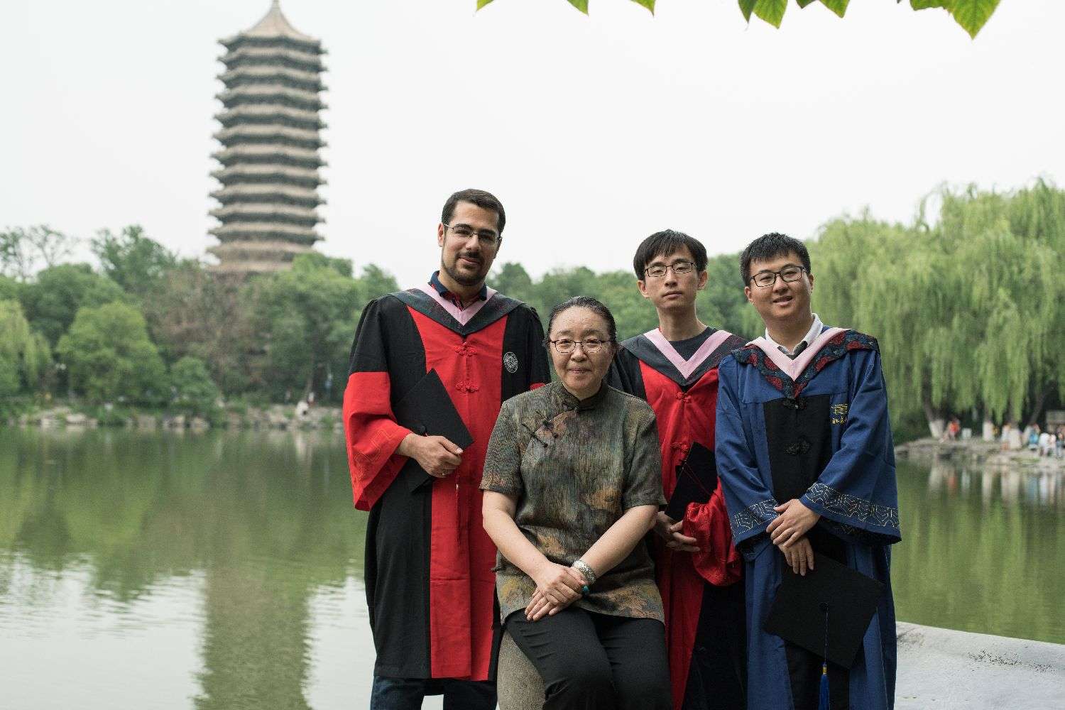 ▲2018年,好麦特(左一)与导师戴锦华(左二)在北京大学未名湖畔合影。(图片来自中新网)