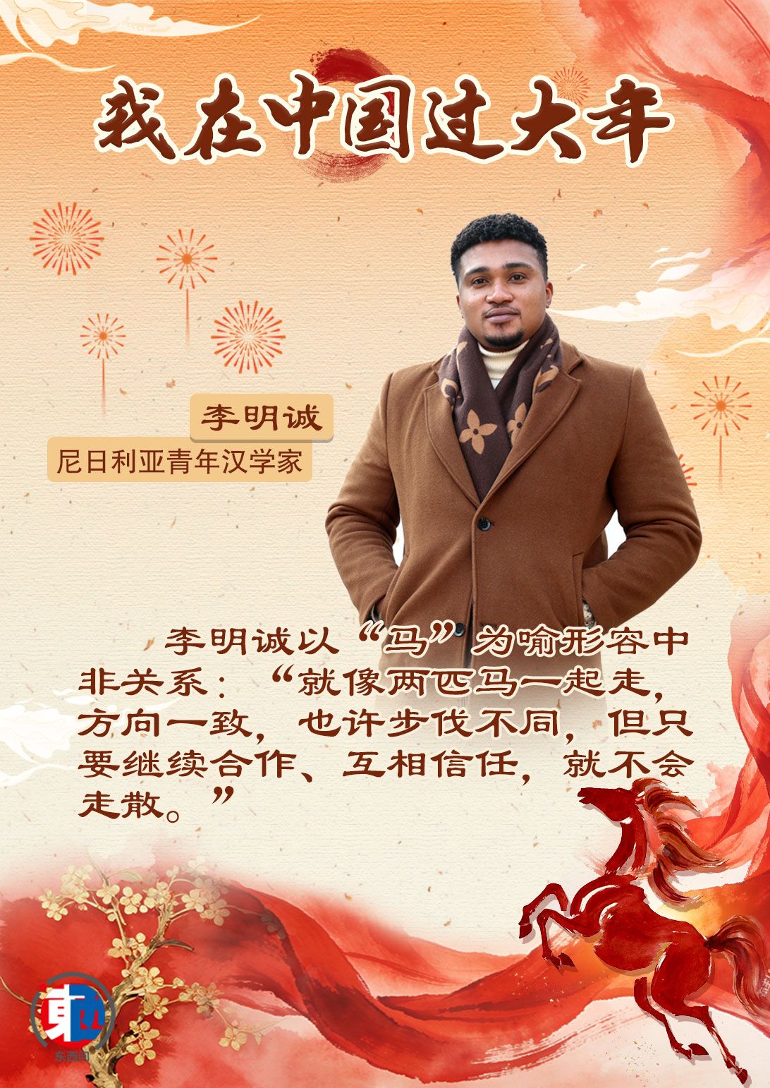 李明诚的硕士和博士均在中国高校就读,他经常向尼日利亚的朋友介绍中国。谈到春节时,他总会从“什么是中国新年”讲起。“中国有元旦,但真正的中国新年,应该是从春节开始。”他说,这样的介绍方式,能帮助非洲朋友更好地理解中国人的时间观念与文化逻辑。