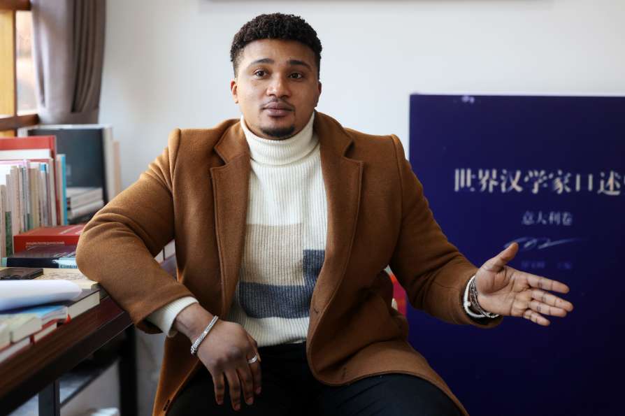 ▲1月22日,尼日利亚青年汉学家李明诚在北京接受记者专访。李国庆摄